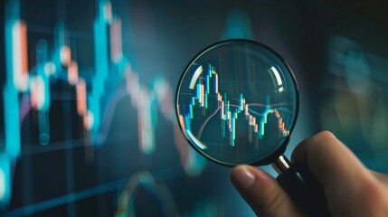 Magnifying glass on candlestick chart