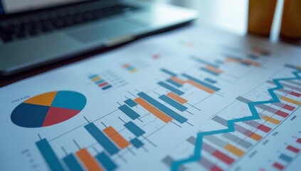 A business professional examines financial data on a digital display, highlighting growth charts and key performance indicators in a modern office environment. Scalp
