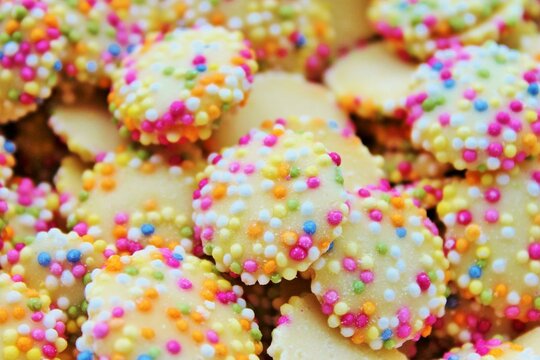 white chocolate candy buttons with sprinkles full screen