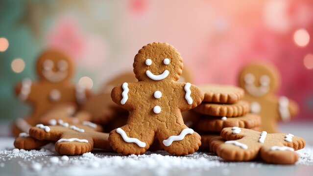Festive gingerbread men cookies with candy and sprinkles