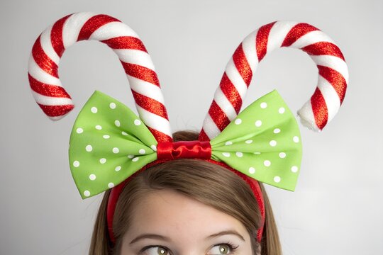 Christmas joy : A charming holiday scene, featuring a whimsical headband shaped like candy canes and a bow, evokes feelings of seasonal joy and festivity.