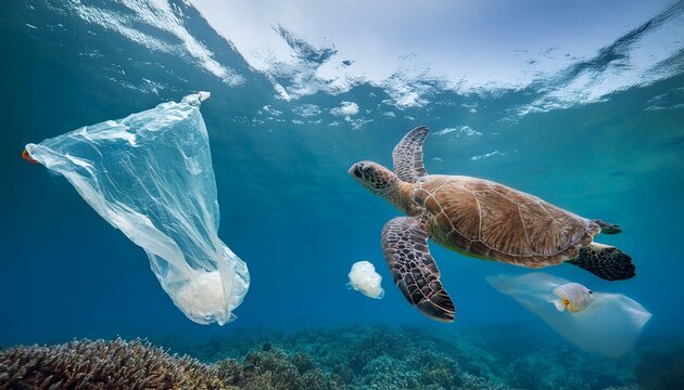 difference between a jellyfish and a plastic bag seen floating underwater but a turtle cannot distinguish between them