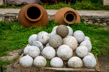 Rustic clay pot cooking over open fire with lemon slices, tomatoes and fresh herbs