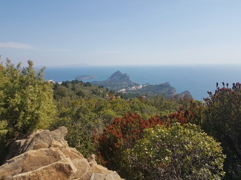 Cassis, France - May 18th 2022: View towards the red cliffs of Cap Canaille.
