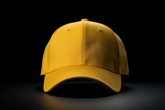 Yellow baseball cap presented as a mockup on a dark background, ideal for showcasing design, branding and printing
