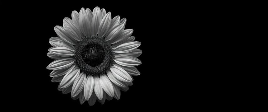 Vintage Black and White Flower Image of Sunflower in Monochrome Background