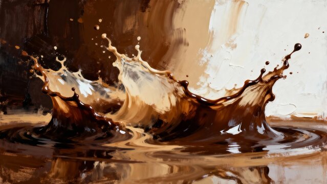 Dynamic splash of liquid chocolate captured in motion with rich textures and reflective surface