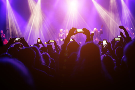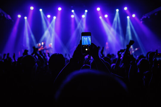 Capturing Concert On Smartphone With Light Beams In Background Images