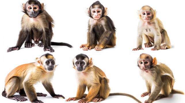 capuchin monkey collection on white background