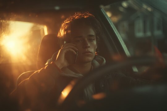 transport, vehicle and people concept - smiling man or driver driving car and calling on smartphone