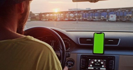 view inside modern luxury car with female woman driving inside making reverse maneuver park assist parktronic showing the obstacles on the main screen display