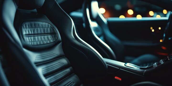 Modern car interior. Interior of prestige modern car. Comfortable leather seats. Modern car interior details. Car detailing.