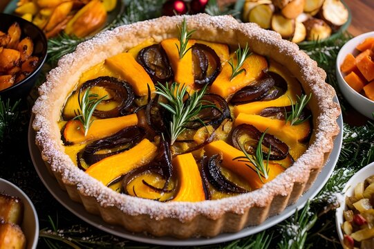 squash and caramelized onion tart Christmas dinner food