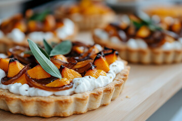 Rustic autumn vegetable tart with caramelized onions, butternut squash, and thyme, squash, rustic