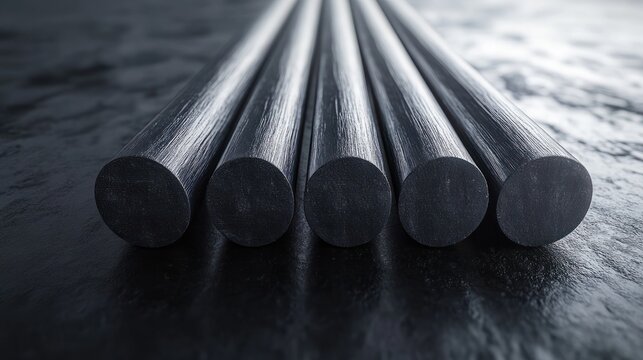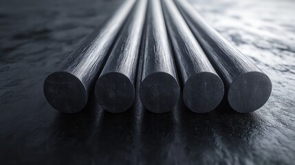 Several carbon fiber rods grouped together. This composite material is used in various high-tech applications due to its lightweight and strong properties.