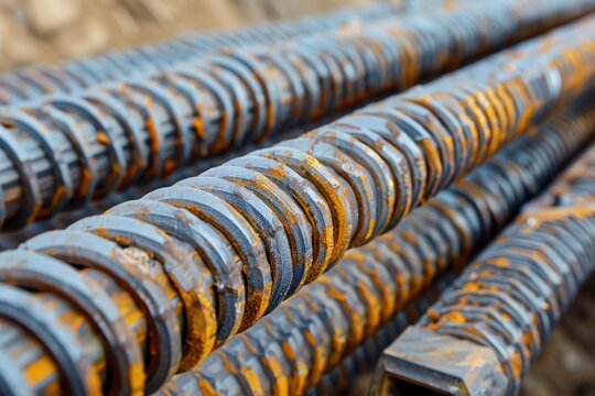 High carbon steel wire rods stacked for industrial use in construction and heavy industry applications with rolls visible on a site.
