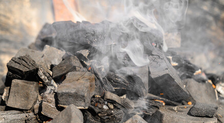 coal burning in the fireplace