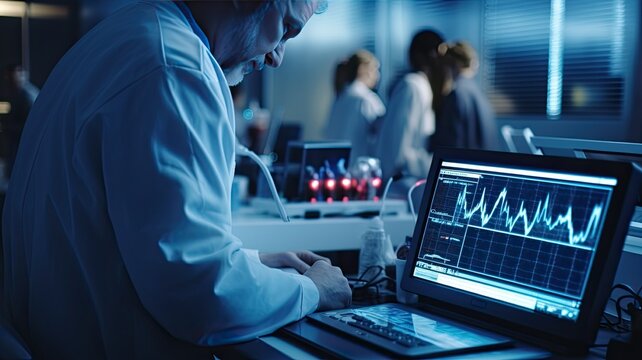 Electrocardiograph monitoring heart activity in a medical facility. Generative AI