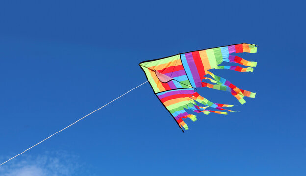 multicolored rainbow flying in the blue sky symbol of freedom and carefree