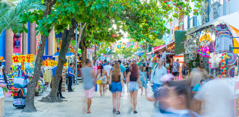 View of busy 5th Avenue, Playa del Carmen, Quintana Roo, Caribbean Coast, Yucatan Peninsula, Riviera Maya