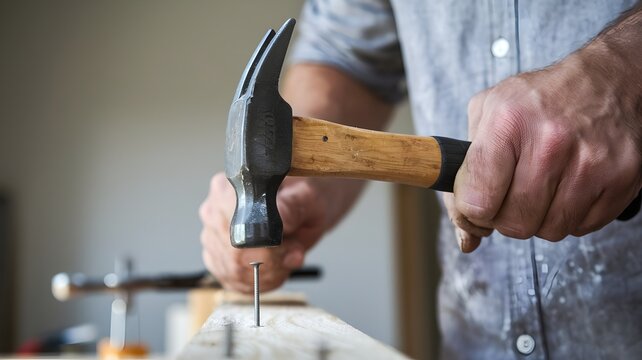 Focused Carpenter Working in Workshop, Craftsmanship and Dedication