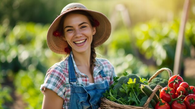 Senior woman flourishing in sunny organic vegetable garden