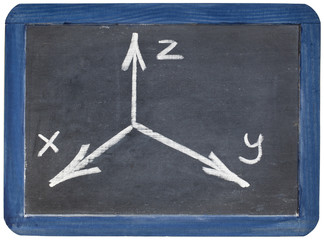Empty or blank blue chalkboard with two axis graph and hand- Cartesian coordinate system
