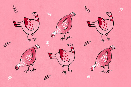 Freerange chickens illustration