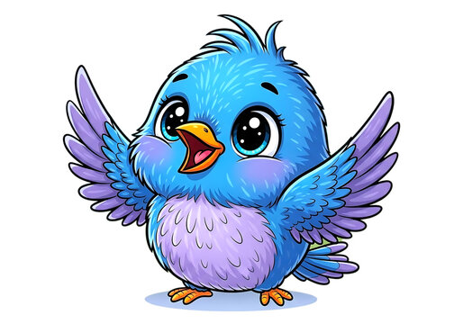 Cute cartoon blue bird with open wings isolated on transparent background