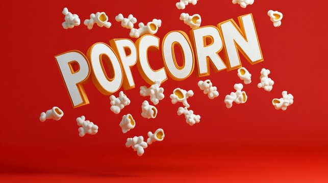 Red background with white letters that say "popcorn" in orange. The letters are popping out of the background, giving the impression of a fun and playful scene
