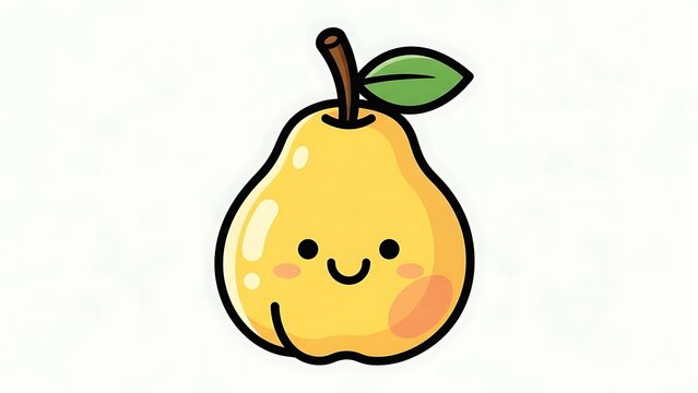Cartoon Yellow Pear with Smiling Face.