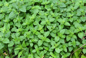 Oregano plants or Origanum vulgare top view. Oregano plant. Oregano is a culinary herb, used for the flavour of its leaves, which can be more intense when dried than fresh.