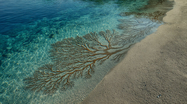 Coral Reef One-Line Sand Drawing with Abstract Pattern