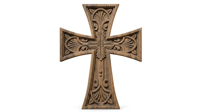 Ornate Wooden Cross Carved Detail Religious Symbol Antique Brown 3d art home holy icon sign faith