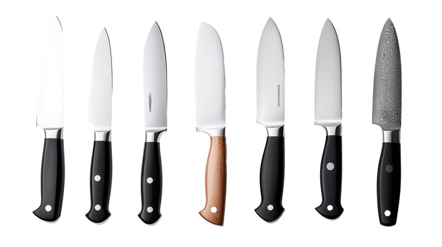 Set of assorted kitchen knives isolated on transparent background