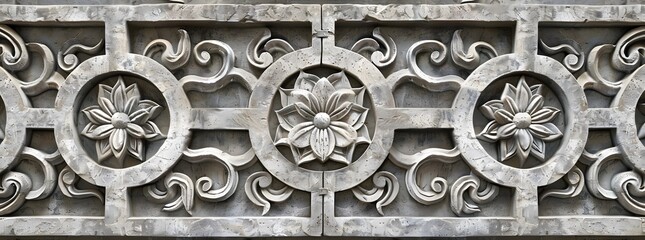 Ancient Chinese Stone Carving with Floral and Geometric Patterns