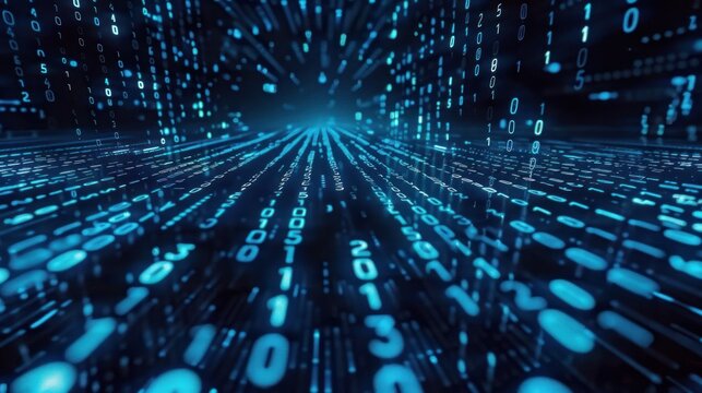 Cascading Digital Binary Streams In Futuristic Data Visualization Images