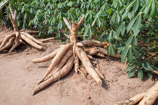 Agriculture is harvesting tapioca from cassava farms. Farmers are harvesting cassava, which is an agricultural product. Cassava, a cash crop for the food industry