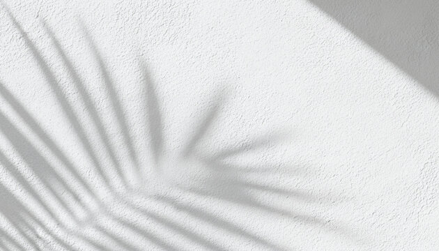 Abstract silhouette shadow white background of natural leaves tree branch cast on wall. Transparent blurry shadows leaf in morning sun light.