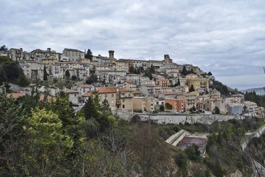The town of Nemi, located on a cliff above the lake in the vicinity of Rome. Italy.