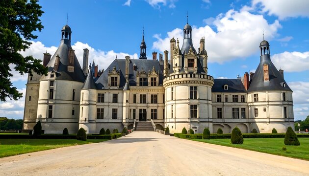 Majestic European castle facade, sprawling grounds