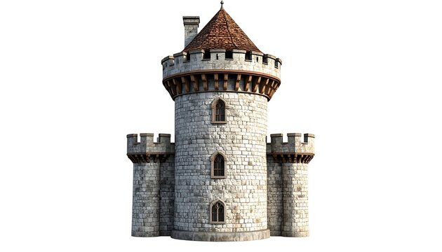 Medieval fortress with tower and crenellated parapets in trieste, italy