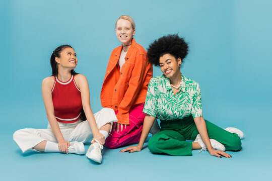 Diverse, empowered women in casual work attire joyfully brainstorming in a modern co-working space, embodying unity, creativity and the spirit of sisterhood.