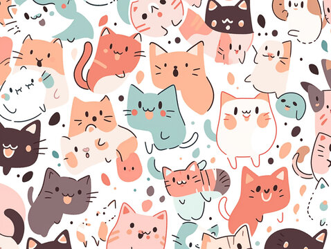 Whimsical black and white cat in blue scarf, digital cosmic art