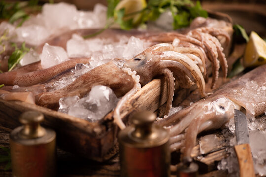 Fresh squid for sale on the market