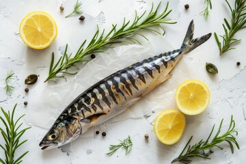 Mackerel and lemon on white