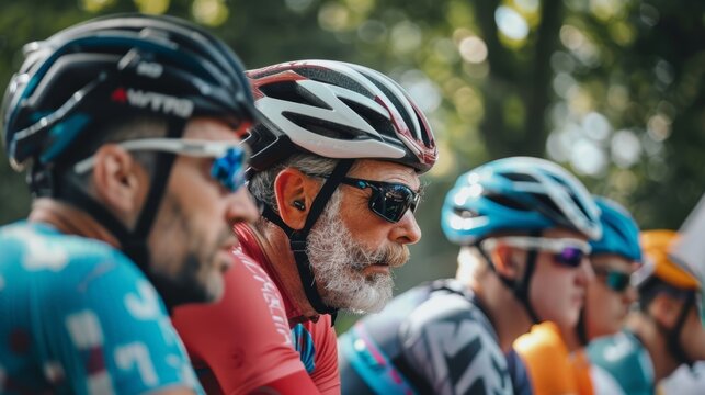 Exhausted athletes taking a break on sunlit path