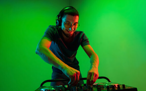 Diverse musicians collaborating with dance red electric guitar and keyboard