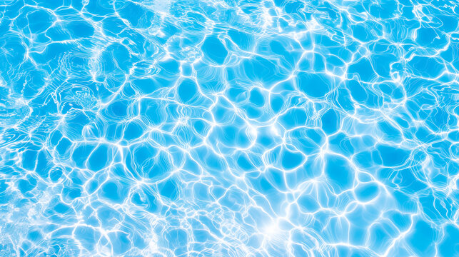Blue swimming pool underwater with bright sun light reflections or caustics, background or texture.
