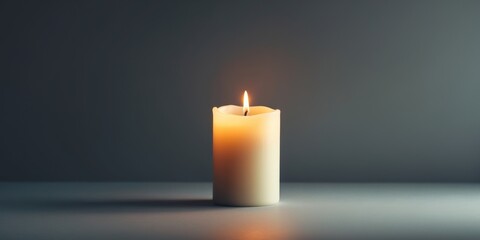 The glowing flame of the burning candle casts a warm candlelight into the darkness